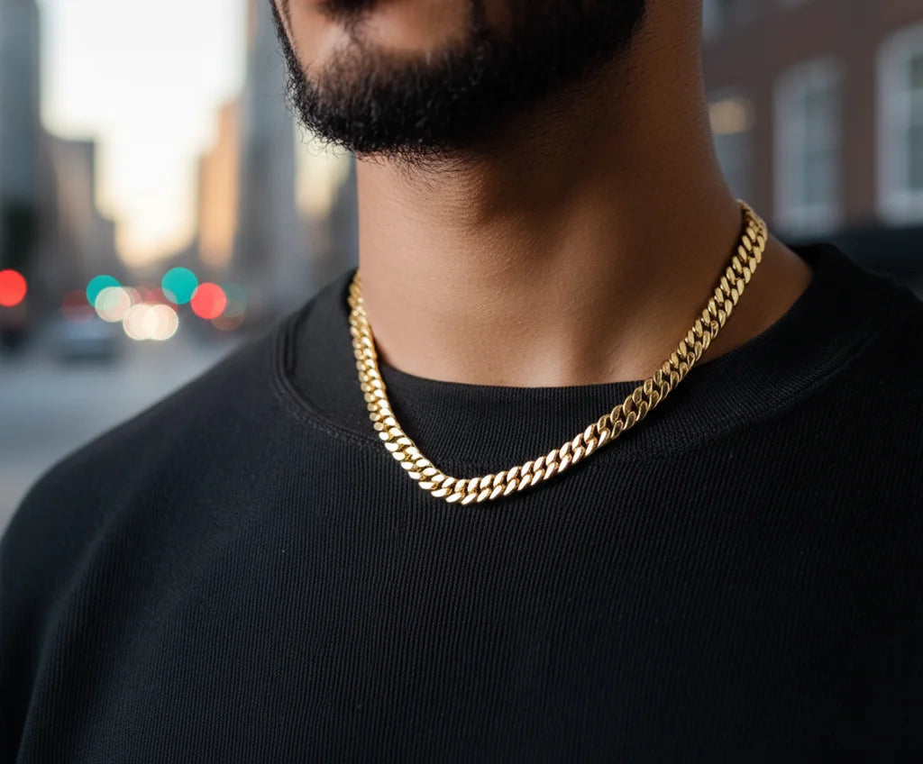 The 8mm Cuban Link is a versatile statement. Its bold presence elevates any look, from daily endeavors to significant events, proving true style knows no boundaries.